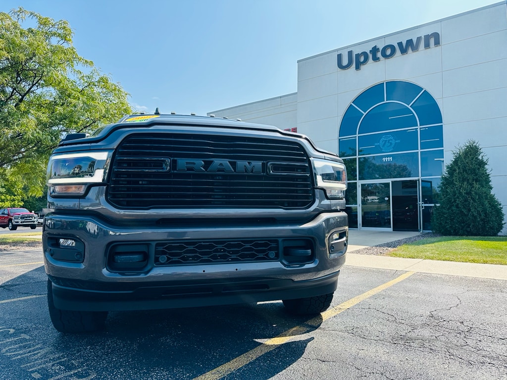 Cold Weather Group: Engine Block Heater; MOPAR Winter Front Grille Cover. Quick Order Package 2HH Laramie. Night Edition: Mirror-Mounted Aux Reverse Lamps; Black Ram Head Tailgate Badge; 20 X 8.0 Black Painted Aluminum Wheels; Exterior Mirrors with Supplemental Signals; Black Headlamp Bezels; Body Color Door Handles; Exterior Mirrors Courtesy Lamps; Painted Front Bumper; Painted Rear Bumper; Trailer Tow Mirrors; Exterior Mirrors with Heating Element; LT285/60R20E OWL On/off Road Tires; Black Exterior Truck Badging; Exterior Mirrors with Memory; Gloss Black Grille Billets/accents; Mirror Running Lights; Body Color Grille Surround; Black Interior Accents; Power Folding Mirrors; Black Exterior Mirrors; Black Tail Lamp Bezels; Power Black Tow Mirrors with Convex Spotter and Memory; Power Adjustable Convex Aux Mirrors. Laramie Level B Equipment Group: Mirror-Mounted Aux Reverse Lamps; Rain Sensitive Windshield Wipers; Power Adjustable Pedals with Memory; Ramcharger Wireless Charging Pad; Exterior Mirrors with Supplemental Signals; Power Chrome Tow Mirrors with Convex Spotter and Memory; Exterior Mirrors Courtesy Lamps; Trailer Tow Mirrors; Remote Tailgate Release; 17 Speaker Harman Kardon Premium Sound; Exterior Mirrors with Heating Element; Auto High Beam Headlamp Control; Chrome Exterior Mirrors; Exterior Mirrors with Memory; Heated Second Row Seats; Mirror Running Lights; Power Folding Mirrors; Foam Bottle Insert (door Trim Panel); 2nd Row in Floor Storage Bins; Radio/driver Seat/mirrors/pedals Memory; Uconnect 5 Navigation Radio with 8.4 Display; Power Adjustable Convex Aux Mirrors. Snow Chief Group. Protection Group. Uconnect 5 Navigation Radio with 8.4 Display. Blind Spot and Cross Path Detection. Leather Trimmed Bucket Seats. Anti-Spin Differential Rear Axle. Adaptive Steering System. Granite Crystal Met CC. Granite Crystal Met CC. Instrument Panel Mounted Auxiliary Switches. Tow Hooks. Clearance Lamps. **Equipment listed is based on original vehicle build and subject to change. Please confirm the accuracy of the included equipment by calling the dealer prior to purchase.**