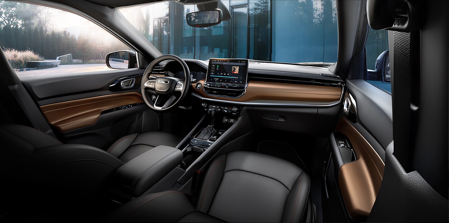 Step inside the 2025 Jeep Compass and discover a refined interior that prioritizes comfort and versatility. The spacious cabin offers ample room for five passengers, with supportive seats that provide long-distance comfort. Premium materials, such as available leather upholstery, add a touch of luxury to your daily drives in Slinger. When you need to accommodate cargo, the Compass lineup's flexible seating configurations and expansive cargo area make it easy to load up for your next weekend getaway.