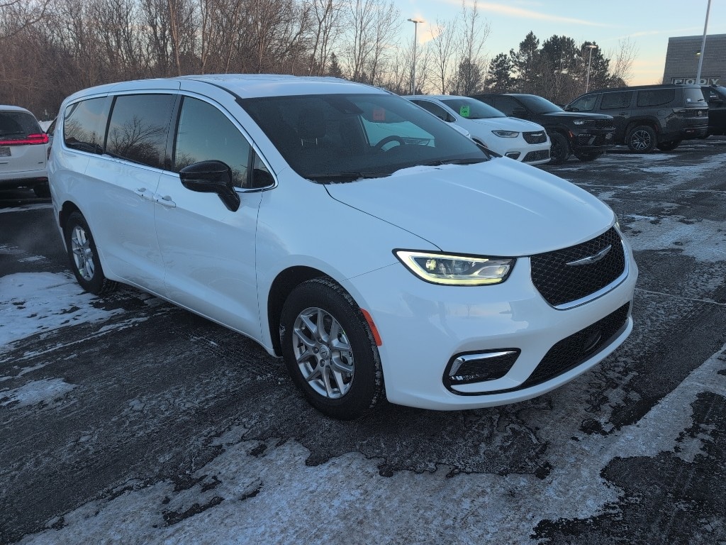This model features a hands-free Bluetooth phone system. The vehicle has automated speed control that adjusts to maintain a safe following distance, enhancing highway driving convenience. The state of the art park assist system will guide you easily into any spot. Start the Chrysler Pacifica from inside with remote start. See what's behind you with the back up camera on this Chrysler Pacifica. This 2026 Chrysler Pacifica comes equipped with Android Auto for seamless smartphone integration on the road. The leather seats in this Chrysler Pacifica are a must for buyers looking for comfort, durability, and style. This mini van's Lane Departure Warning helps keep you in your lane. The Chrysler Pacifica offers Automatic Climate Control for personalized comfort. The vehicle is pure luxury with a heated steering wheel. This unit offers Apple CarPlay for seamless connectivity. It's Forward Collision Warning feature alerts drivers to potential front-end collisions. Quickly unlock this Chrysler Pacifica with keyless entry.