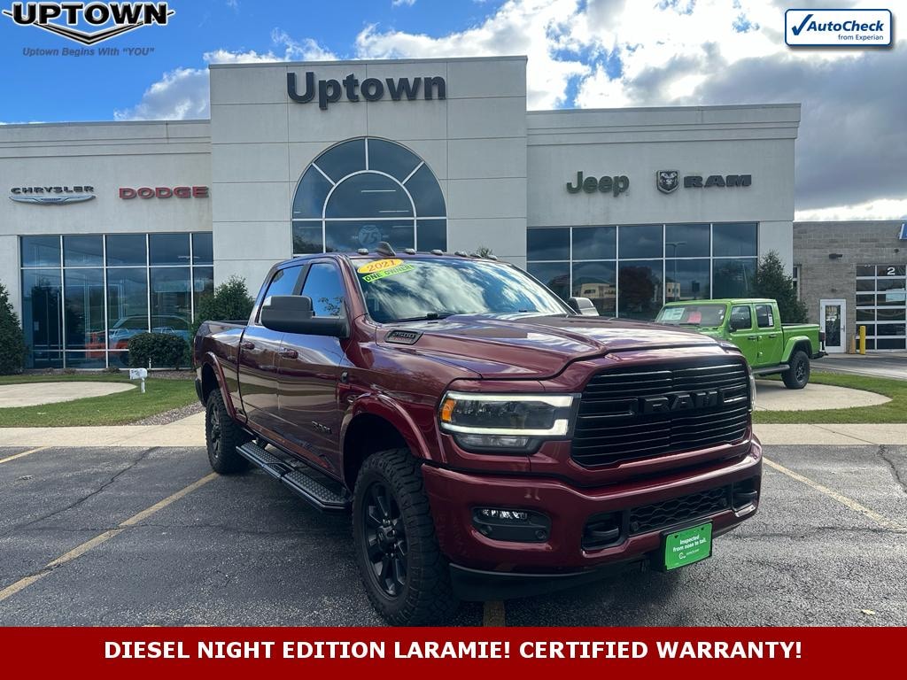 Discover rugged capability and refined comfort with this certified pre-owned 2021 Ram 2500 Laramie 4WD, located in Slinger, WI. Powered by a dependable 6-cylinder 6.7L diesel engine, this heavy-duty pickup delivers best-in-class torque for towing and hauling while maintaining smooth on-road manners. The Laramie trim blends premium appointments with work-ready capability, making it an ideal choice for contractors, weekend adventurers, and anyone who demands strength without sacrificing luxury. This Ram 2500 is priced to sell and offers the best price in the market for comparable certified pre-owned models. Inside, the cabin is thoughtfully equipped for comfort and convenience: heated steering wheel for cold Wisconsin mornings, automatic climate control for consistent comfort, and leather-appointed seating for long drives. Stay connected and in control with integrated navigation, Apple CarPlay compatibility, and a remote start system that warms or cools the cab before you step inside. Safety and reliability are reinforced through the certified pre-owned program, which includes a comprehensive inspection and warranty coverage for added peace of mind. The 4WD system provides confident traction in snow and off-road conditions, making this Ram 2500 a versatile choice year-round. Located in Slinger, WI, this certified 2021 Ram 2500 Laramie offers exceptional valueâ"contact us today to schedule a test drive and experience the best-priced heavy-duty truck in the area.